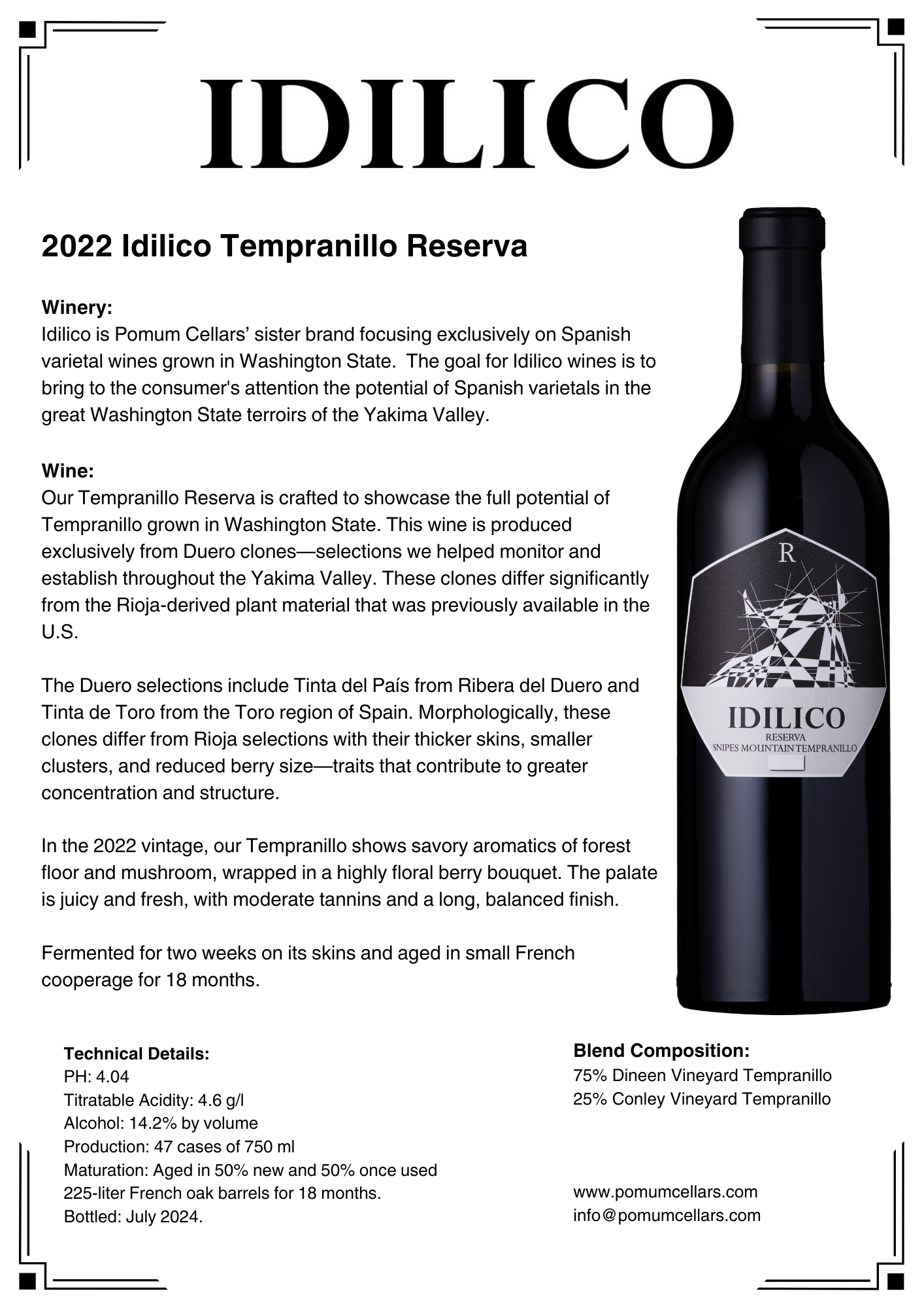 Our Tempranillo Reserva comes to us exclusively from the Duero clones we helped import and have been planting throughout the Yakima Valley. These clones are a stark comparison from the ones previously available in the US, which came from the Rioja region of Spain.